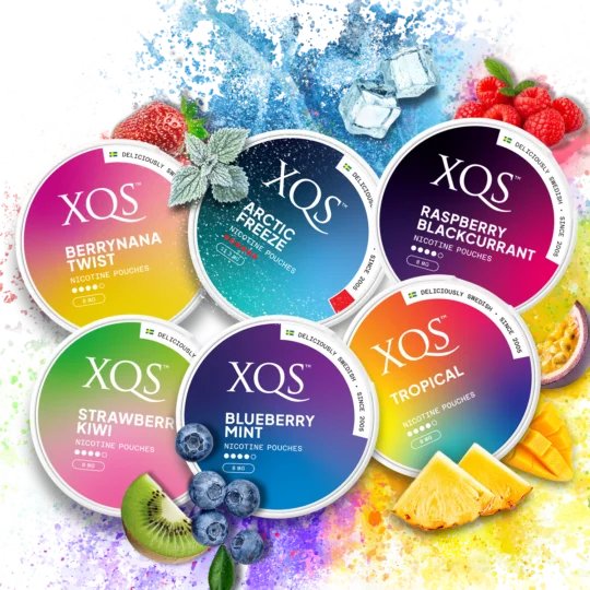 The XQS Black Cherry Strong by XQS features a cherry flavour with a slim format. It has a strong strength with 20 pouches per can, designed for a convenient fit.